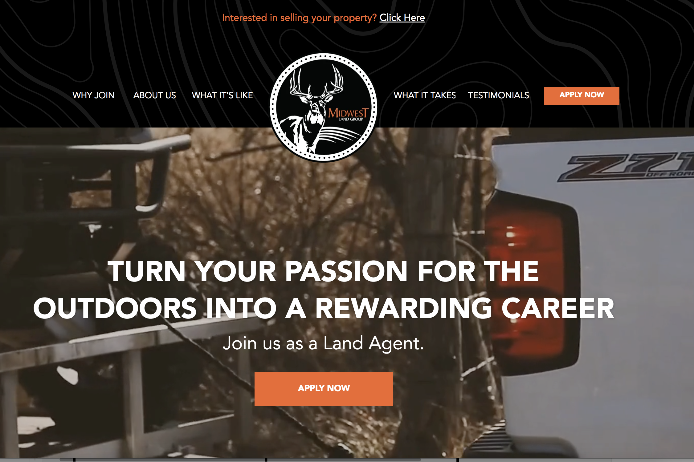 A desktop/mobile landing page for a lucrative recruiting campaign for land brokers.